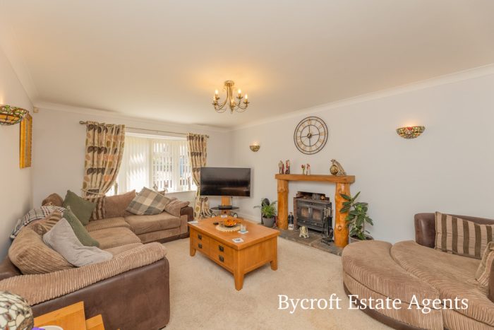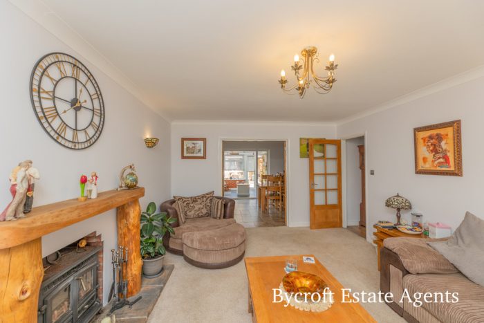 LOUNGE 17' 9" x 12' 4" (5.41m x 3.76m) bow bay window to front aspect; radiator; fireplace with cast iron wood burner; wall lights; panelled doors through to Kitchen Diner.