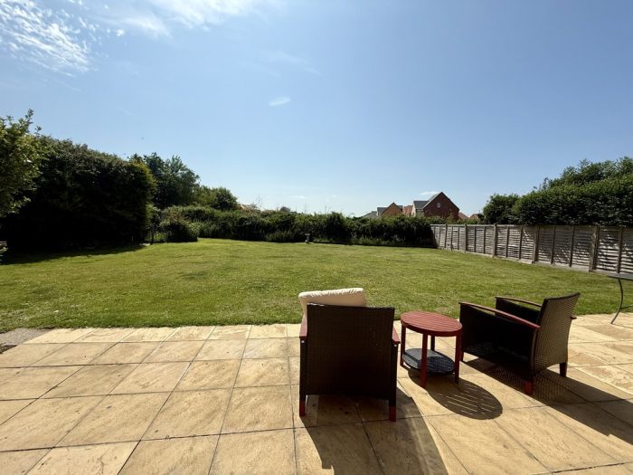 OUTSIDE To the front of the property there is a double width brickweave driveway and side access gate giving access to the side entrance door. To the side and rear there is a very good size, enclosed garden mainly laid to lawn with shrubs and plants, paved patio area, outside tap and lighting, shingled area, three useful brick stores and an air source heat pump.