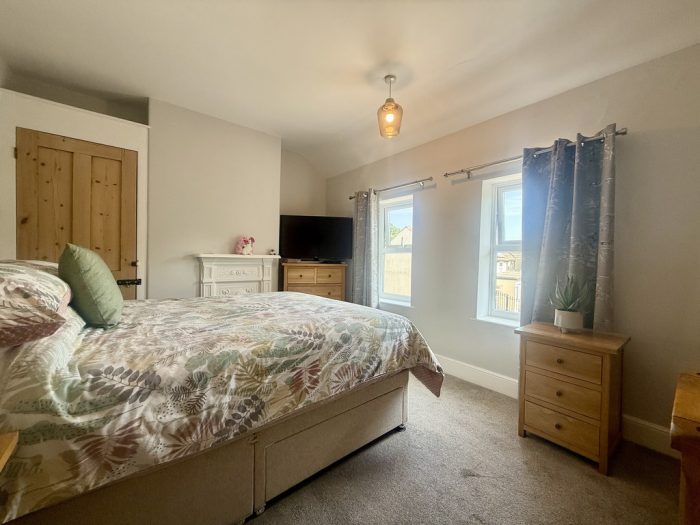 BEDROOM 1 13' 2" max x 10' 0" (4.01m x 3.05m) including built in storage cupboard; feature cast iron fireplace; two windows to front aspect; further build in wardrobe cupboard; radiator.