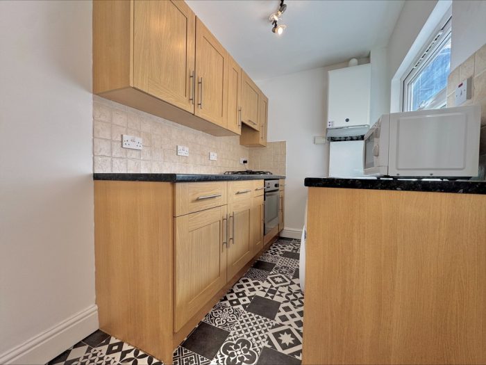 KITCHEN 9' 8" x 5' 10" (2.95m x 1.78m) upvc double glazed window to side aspect; upvc double glazed door to side aspect; modern fitted kitchen with a mix of wall and base units; integrated hob; integrated oven with extractor hood above; central heating boiler; space and plumbing for washing machine.