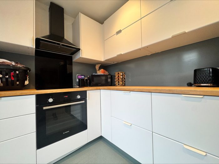 KITCHEN 14' 1" x 7' 6" (4.29m x 2.29m) fitted kitchen with a range of wall and base units; integrated sink drainer; integrated oven with hob above and extractor hood over; integrated dishwasher; upvc double glazed window to the rear aspect; upvc double doors to rear aspect; space for fridge/freezer.