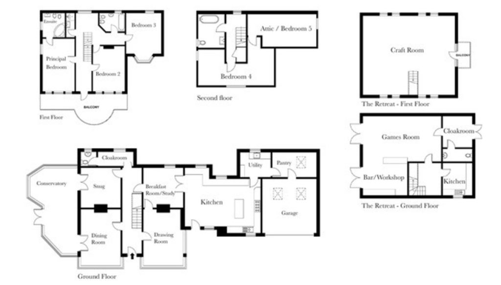 - The Retreat entertaining/guest building, separate gym, and further outbuildings.