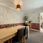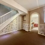 DINING ROOM 14' 8" x 12' 3" stairs to first floor(4.47m x 3.73m) brick fireplace; under stairs storage cupboard; window to rear aspect; radiator; brick arch through to;