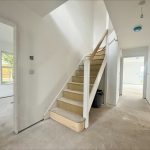 ENTRANCE HALL 18' max x 7' 7" max (5.49m x 2.31m) minus stairwell; stairs to first floor landing; upvc door to front flanked by double glazed windows to front.