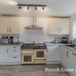 KITCHEN 13' 11" max x 8' (4.24m x 2.44m) including utility cupboard comprising of worktops with space and plumbing for washing machine and tumble dryer. Kitchen - l-shaped worktop with range of base cupboards and drawers including integrated dishwasher; wine rack; space for American style fridge/freezer; Leisure Rangemaster 110 double range; one and a half bowl sink with mixer tap; range of wall units, light and extractor; window.