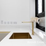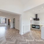 KITCHEN/DINER 18' 7" x 15' 8" max (5.66m x 4.78m) L-shaped; newly fitted kitchen; comprising of quartz l-shaped worktops; range of base cupboards and drawers including pan drawers; two AEG ovens; matching five ring induction hob; light and extractor; integrated dishwasher; one bowl sink with gold matt mixer tap; bank of larder units including integrated fridge and freezer.