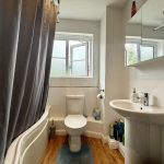 BATHROOM bath; mains shower fitting; wc; pedestal wash hand basin with mixer tap; frosted double glazed window; radiator.