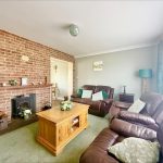 SITTING ROOM 13' 6" x 11' 7 max" (4.11m x 3.53m) UPVC double glazed window to front; feature fireplace with decorative brick surround, tiled hearth, wooden mantle, inset wood burning stove.