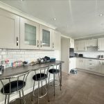 KITCHEN DINER 25' 7" x 9' 4 max" (7.8m x 2.84m) fitted with a range of wall and base units with square edge work surfaces over; stainless steel 1½ bowl sink, mixer tap over; inset electric hob with cooker hood over, built in electric oven; integrated dishwasher, fridge and freezer; tiled splashbacks; UPVC double glazed windows to rear; UPVC double glazed door to conservatory and UPVC double glazed French doors to rear; tiled flooring.