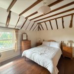BEDROOM 1 12' 2 + stairwell" x 10' 10" (3.71m x 3.3m) with double glazed window to front; exposed feature beams and feature brick wall.