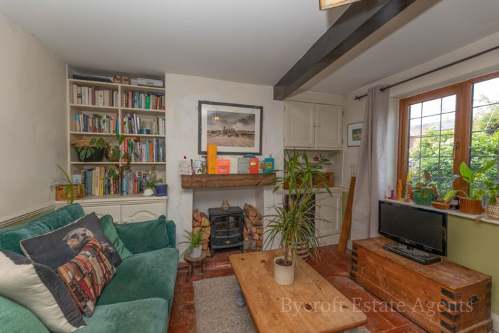 SITTING ROOM 12' 11 max" x 11' (3.94m x 3.35m) with pamment tiled floor; UPVC double glazed window to front; feature fireplace with decorative mantle and pamment tile hearth.