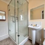 EN SUITE SHOWER 8' 6" x 4' 10" (2.59m x 1.47m) fitted with a white suit comprising of low level wc; pedestal wash hand basin; walk in shower cubicle with wall mounted shower unit, tiled splashbacks; shaver point; extractor fan; UPVC double glazed window to rear; heated towel rail radiator.