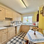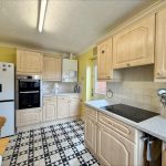 KITCHEN 14' 3" x 8' 1" (4.34m x 2.46m) fitted with a range of wall and base units with square edge work surfaces over; inset 4 ring electric hob with cooker hood over; built-in double electric oven; space for fridge freezer; wall mounted oil fired central heating boiler; plumbing for washing machine and dishwasher; inset 1½ bowl single drainer sink with mixer tap over; upstand and tiled splashbacks; UPVC double glazed window to front.