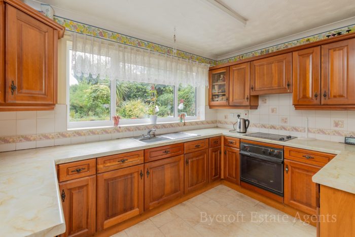 OUTSIDE To the front a driveway providing space for 3 cars standing. Garden with shrubs and trees; outside light; brick arch and gate to side pathway providing access to the rear which is an enclosed mature garden laid mainly to lawn with deep shaped borders stocked with flowers, shrubs and trees; timber shed; storage tank; outside light; paved patio area; outside tap.