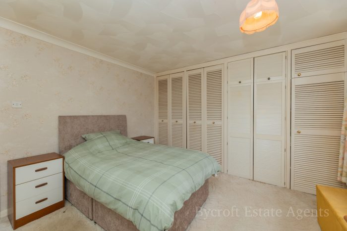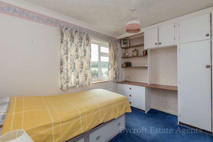 BEDROOM 2 10' 10" x 9' 1 incl dbl robe" (3.3m x 2.77m) built in double wardrobe, vanity unit, chest of 3 drawers and high level storage cupboards; rear window enjoying field views; radiator.