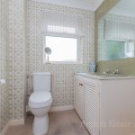 BATHROOM bath, mixer tap shower attachment; wc with push button cistern; vanity with hand wash basin, double storage cupboard under; tiled walls; frosted double glazed window; radiator.