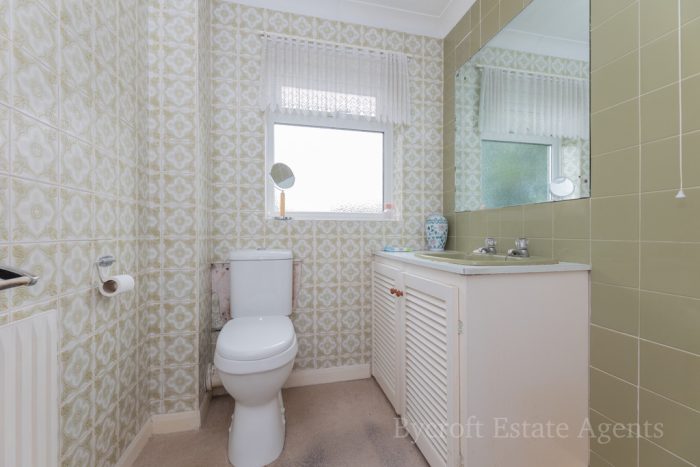 DOWNSTAIRS CLOAKROOM wc with push button cistern; pedestal hand wash basin; frosted double glazed window; half tiled walls; radiator.