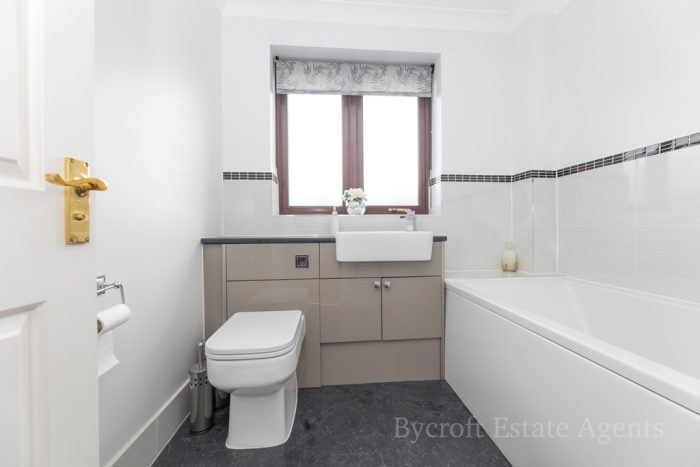 FAMILY BATHROOM wc; hand wash basin; bath with mixer taps; uPVC double glazed window to rear aspect; heated towel rail.