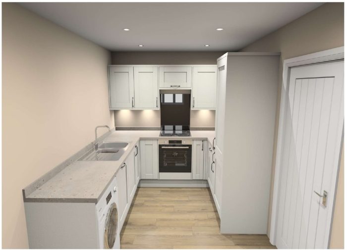KITCHEN/DINER 22' 0" x 12' 9" (6.73m x 3.89m) choice of kitchen available, Bosch Appliances, single oven, electric hob, extractor fan, 50/50 fridge/freezer; window to front aspect, radiator; spotlights