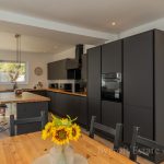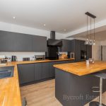 KITCHEN DINER FAMILY ROOM 27' 3" x 12' (8.31m x 3.66m) recently fitted kitchen comprising of large L-shaped worktop; good range of base, cupboards and drawers under including integrated dishwasher; pan drawers; shelved larder; integrated fridge freezer; built-in eye level oven; 5 ring hob; 1½ sink with mixer tap; space and plumbing for washing machine; range of wall units; light and extractor; large breakfast bar with cupboards and drawers under; windows to side and rear aspect; radiator; downlights; door to rear garden.