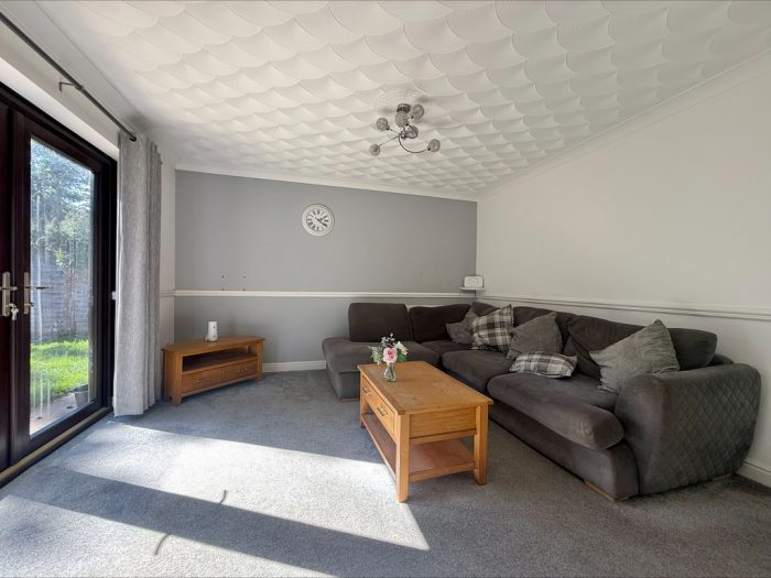SITTING ROOM / DINING ROOM 21' 7 max" x 12' 7 max" (6.58m x 3.84m) uPVC double glazed window to rear; uPVC double glazed French doors to rear.