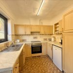 KITCHEN 10' 6" x 8' 2" (3.2m x 2.49m) fitted with range of wall and base units with rolled edge work surfaces over; inset stainless sink with mixer tap over; built-in electric oven; inset electric hob with cooker hood over; space for fridge freezer; tiled splashbacks; uPVC double glazed door and window to side; plumbing for automatic washing machine.