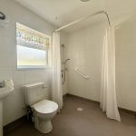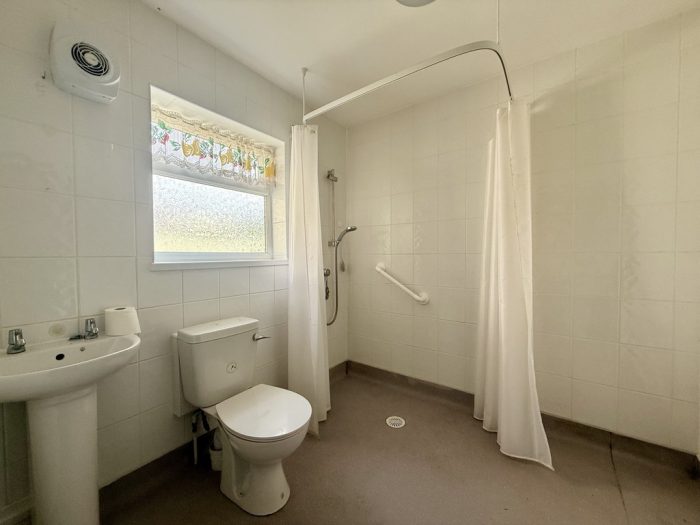 WET ROOM pedestal wash hand basin; wc; mains shower with soak away drainage; frosted double glazed window; radiator; extractor fan.
