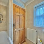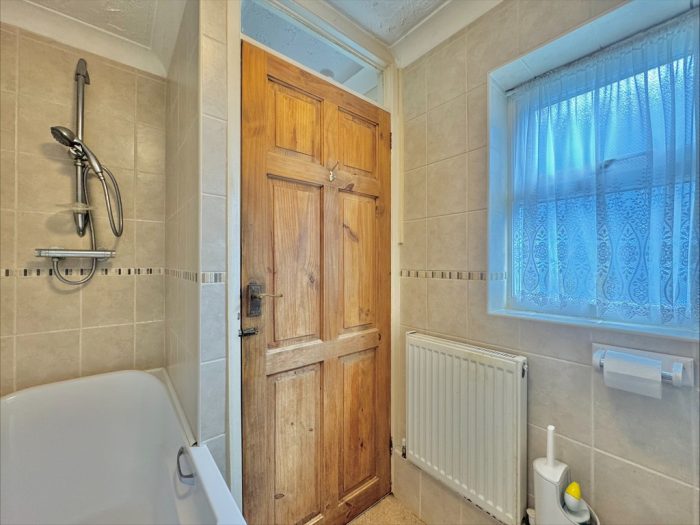 DOWNSTAIRS BATHROOM bath with mixer taps; wall mounted shower; wc; hand wash basin; uPVC window to side aspect; central heating boiler.