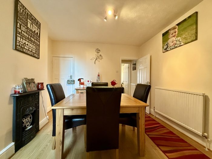 DINING ROOM 11' 2" x 10' 2" (3.4m x 3.1m) plus under stairs storage window to rear aspect; radiator. Opening to;
