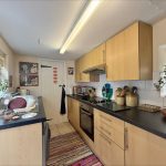 KITCHEN 11' 8" x 6' 5" (3.56m x 1.96m) fitted with a range of wall and base units with square edge work surfaces over; inset stainless steel sink with mixer tap; tiled splashbacks; inset four ring electric hob, cooker hood over; built in electric oven; space for fridge freezer; upvc double glazed windows to both sides; door to side; tiled flooring.