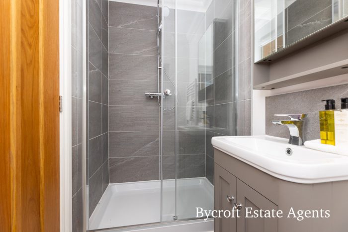 EN SUITE SHOWER ROOM shower cubicle; wc; wash hand basin; rear window; heated towel rail.