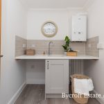 UTILITY ROOM worktop with space for plumbing for washing machine and tumble dryer; side door.