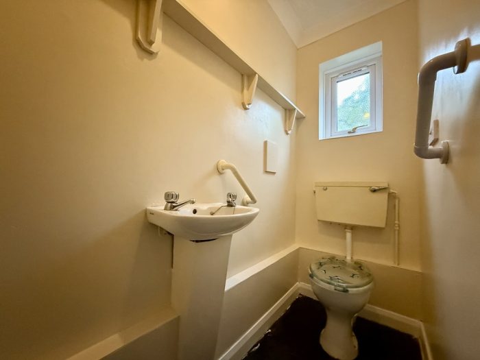 CLOAKROOM wc; wash hand basin; frosted double glazed window.