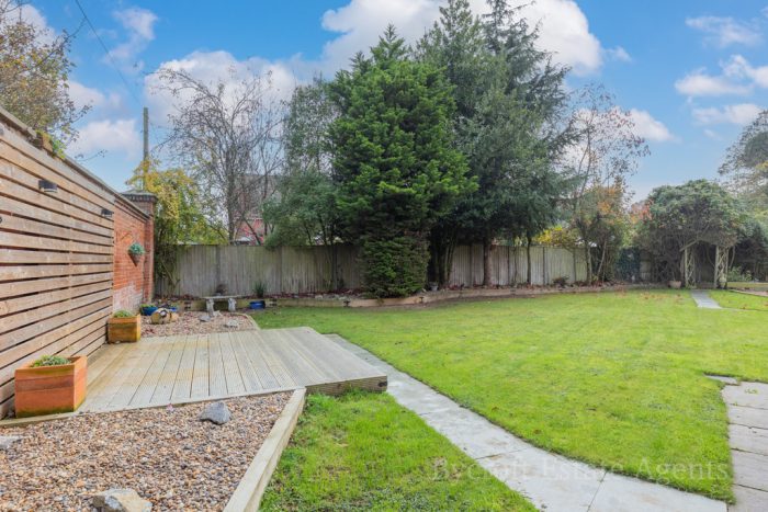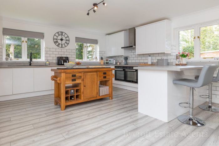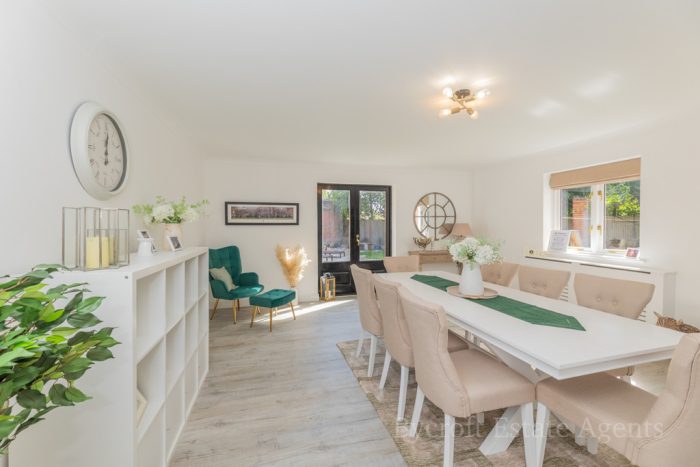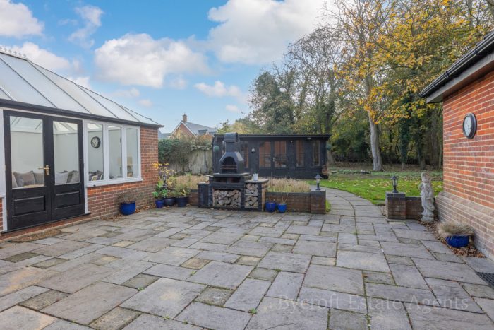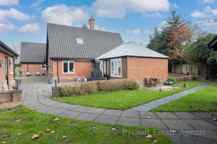 OUTSIDE The property is approached by stylish wrought iron gates with brick peers and separate pedestrian entrance gate. The front of the property is laid mainly to lawn with a substantial woodland area, blocked pathway providing ample off road parking for the property and giving access to the double garage. Paved patio seating area with pathway leading to the summer house of timber construction. Brick built log store area adjoined to garage and brick built BBQ. Further patio seating area set to a pleasing aspect. To the rear of the property a further lawn property with mature trees, low maintenance shingled area with water feature, paved patio seating area with decorative wall and raised decked seating area, outside lighting and power points. A gated side garden that is laid mainly to pave with a raised decked seating area with covered pagoda, historic Norfolk red brick wall and access gate to driveway.