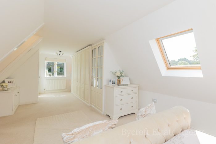 BEDROOM 1 28' 7" x 12' 11 max + door recess" (8.71m x 3.94m) double glazed window to front and rear; Velux light window to side; 2 built-in wardrobes.