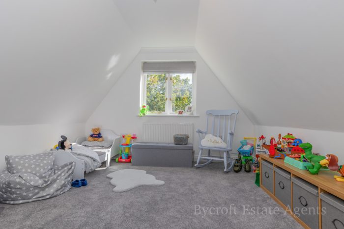 BEDROOM 6/OFFICE ROOM 17' 10 max - stairwell" x 10' 3" (5.44m x 3.12m) two Velux roof windows to the side aspects; two double radiators; door to side with own staircase.