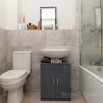 FAMILY BATHROOM wc; pedestal wash hand basin with mixer tap; bath with mixer tap; mains shower fittings; shower screen; heated towel rail; down lights.