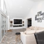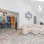 LOUNGE/DINER 21' 6" x 11' 9" (6.55m x 3.58m) vaulted ceiling with Velux windows; bi folding doors; feature Apex rear window; down lights; modern upright radiator; media wall with built in fire and display recesses.