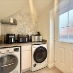UTILITY ROOM 6' 2" x 5' 3" (1.88m x 1.6m) fitted with a range of base units with square edge quartz work surfaces over; plumbing for automatic washing machine; space for tumble dryer; tiled flooring; double glazed composite door to rear.