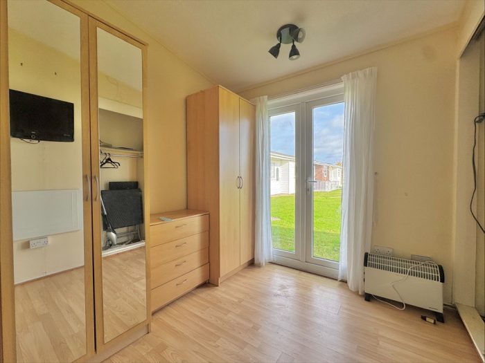 BEDROOM 3 9' 10" x 7' 7" (3m x 2.31m) upvc double glazed double doors to the rear aspect; fitted and built in wardrobe space.