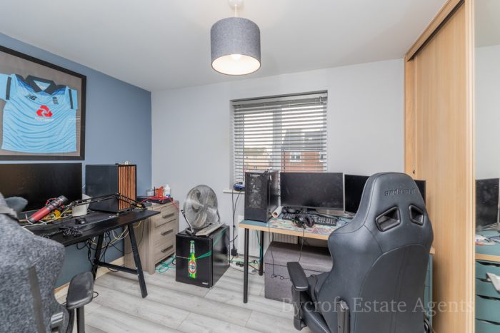 BEDROOM 2 10' 2" x 7' 11" (3.1m x 2.41m) plus a range of wall to wall fitted wardrobes with sliding doors; window to rear aspect; radiator.