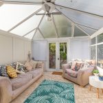 LODGE CONSERVATORY 11' 8" x 11' 4" (3.56m x 3.45m) of UPVC construction with poly carbonite roof and ceiling fan; UPVC double-glazed window to the rear and side aspect; UPVC double-glazed French door to rear.
