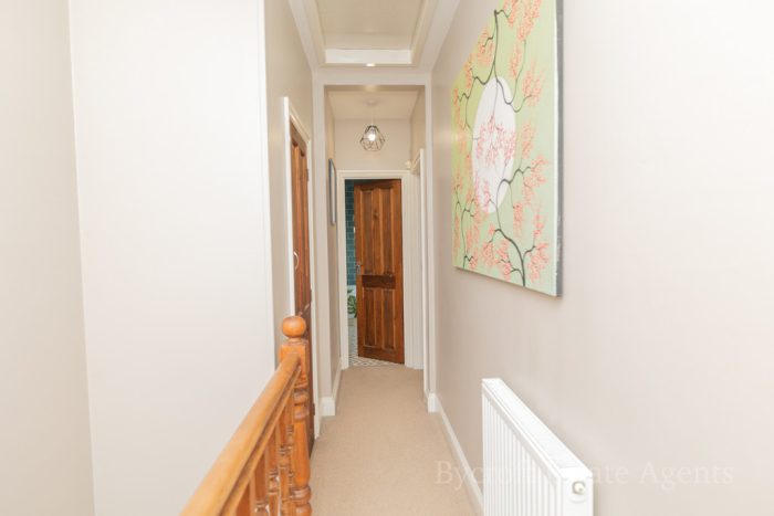 FIRST FLOOR LANDING 15' 4 max" x 5' 3 max into stairwell" (4.67m x 1.6m) UPVC double-glazed window to rear; built-in storage cupboard; loft access.