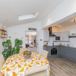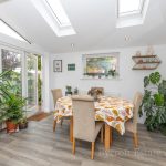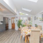 OPEN PLAN KITCHEN DINING 15' 3 max " x 14' 3 max" (4.65m x 4.34m) fitted with a range of wall and base units with square edge work surfaces over; inset 4 ring induction hob with cooker hood over; built-in electric oven; inset 1½ bowl sink with mixer tap over; integrated dishwasher; space for American style fridge freezer; tiled splashbacks; built-in microwave; dining area with Velux roof light windows; UPVC double-glazed window to side; double-glazed bi-folding doors to rear.
