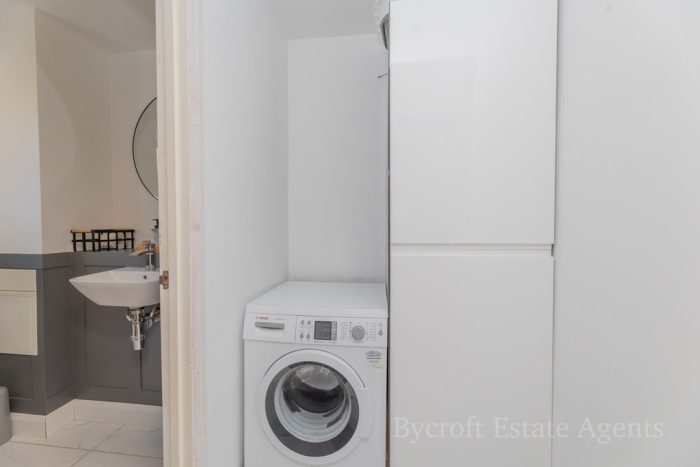 UTILITY ROOM 5' 4" x 4' (1.63m x 1.22m) plumbing for automatic washing machine; built-in storage cupboard.