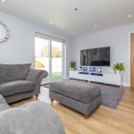 SITTING ROOM 14' 11" x 14 max minus stairwell' (4.55m x 4.27m) UPVC double-glazed sliding patio door to rear.