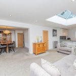 KITCHEN/LIVING ROOM 30' 6" x 12' 5" (9.3m x 3.78m) recently installed kitchen with worktop; one and half bowl sink with mixer tap; range of cupboards under including integrated washing machine; integrated slimline dish washer; central island with pan drawers and cupboards under together with Electrolux induction hob; further bank of units comprising integrated fridge freezer; oven and grill; larder cupboard; range of wall units; ceiling hung extractor; side window; large lantern style window; bi folding doors to the rear; down lights; under floor heating.