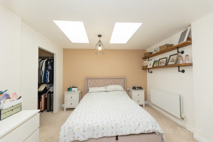BEDROOM 1 12' 4" x 11' 5 max" (3.76m x 3.48m) two Velux style roof windows to side with fitted blackout blinds. Walk-in wardrobe 6'2" x 3'9" with fitted hanging rails.