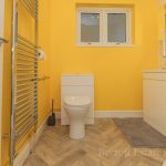 SHOWER ROOM 7' 6" x 6' 5" (2.29m x 1.96m) fitted with a white suite comprising of a low level WC; vanity hand wash basin with mixer tap over with storage cupboards below; quadrant shower cubicle; sliding shower screen door, wall mounted shower unit with hand and soaker attachments; aqua board splashbacks; extractor fan; loft access; UPVC double-glazed window to rear.