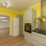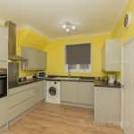 KITCHEN 14' 4 max" x 10' 3 max" (4.37m x 3.12m) fitted with a range of base and wall units with square edge work surfaces overs; inset 1½ sink with mixer tap over; inset 4 ring electric hob with cooker hood over, steel splashback; built-in electric oven; plumbing for automatic washing machine; upstand; space for fridge freezer; UPVC double-glazed window to side.